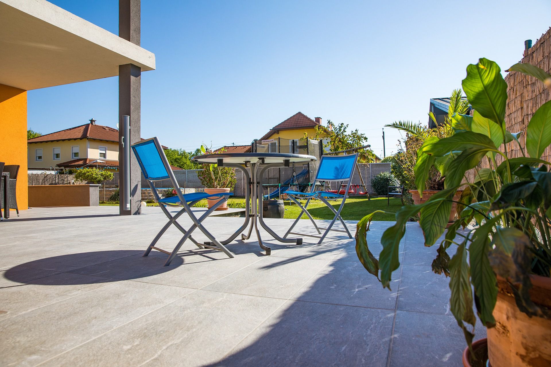 Terrassen und Sitzplätze bieten einen gemütlichen Bereich im Freien zum Entspannen und Genießen. Sie können aus verschiedenen Materialien wie Holz, Stein oder Beton hergestellt werden. Terrassen und Sitzplätze erfordern regelmäßige Reinigung und gegebenenfalls eine Behandlung gegen Witterungseinflüsse. Sie können in verschiedenen Formen und Größen angelegt werden, je nach Bedürfnissen und verfügbarem Platz.